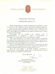 Актуално Вие сте тук: Начало Актуално ПОЗДРАВИТЕЛНИ АДРЕСИ ПО ПОВОД ПРАЗНИКА НА ОБЩИНА... Фотогалерия ПОЗДРАВИТЕЛНИ АДРЕСИ ПО ПОВОД ПРАЗНИКА НА ОБЩИНА ДОБРИЧКА 26.06.2015