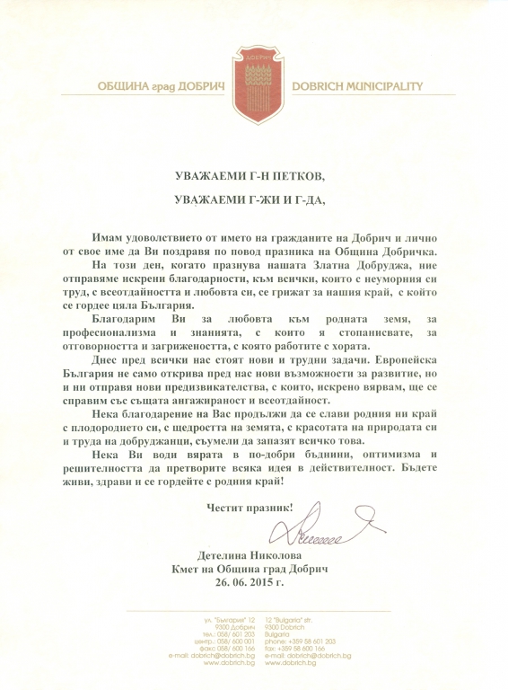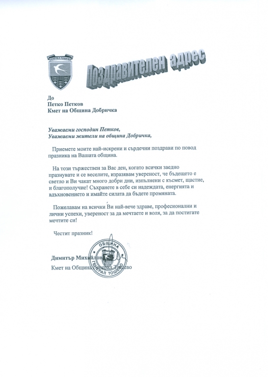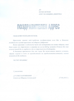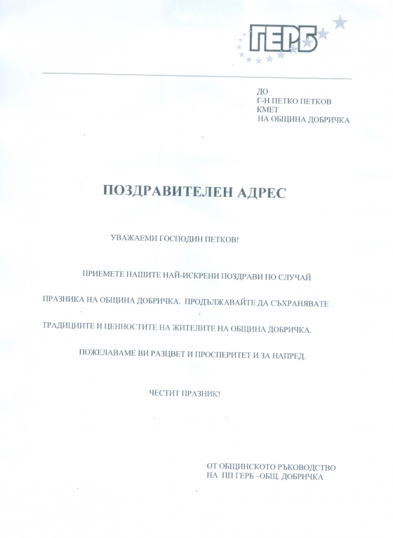Фотогалерия Вие сте тук: Начало Фотогалерия Разгледайте Спортен празник - турнир по волейбол - 27.11.2025 с.Победа Разгледайте Откриване на учебната година - 15.09.2025 -Батово, Победа Разгледайте 109 години Добричка епопея - 7.09.2025 г -Мемориал с.Козлодуйци Разгледайте ХIII Събор на българското народно творчество - Копривщица 9 август 2025 г четвърта сцена -Община Добричка Разгледайте "ПЕСНИ И ТАНЦИ ОТ СЛЪНЧЕВА ДОБРУДЖА" -Дебрене 28 юни 56-то издание Разгледайте Връчване на Годишните награди на Община Добричка за 2024 г- 27 юни 2025 г Разгледайте Втори преглед на художествената самодейност - Овчарово, 21 юни 2025 г Разгледайте Първи преглед на худ.самодейност - с. Смолница 14.06.2025 г. Разгледайте Събор "Главанци" - 7 юни 2025 г. с. Владимирово -второ издание Разгледайте Тържествен концерт и награждаване 23 май 2025 г.Органова зала "Добрич" Разгледайте 11-та хоротека с.Бранище 18.05.2025 г Разгледайте Първи военно-приложни игри - 09.05.2025 стадион с.Победа Разгледайте Ромски празник - Карапелит 2025 г. Разгледайте Тодоровден 2025 г.Малка Смолница Разгледайте Бабинден 2025г. Разгледайте Коледни концерти 2024 г. Разгледайте Откриване на новопостроената детска градина в Бранище - 16.09.2024 г. Разгледайте Откриване на новата учебна година в с.Божурово- 16.09.2024 г. Разгледайте Изложение на производителите и занаятчиите от община Добричка - 13.09.2024г. Разгледайте Мемориал край с.Козлодуйци - 108 г.Добричка епопея -7.09.2024 г. Разгледайте Дебрене - 2024г. Разгледайте Годишни награди 2023 Г. Община Добричка- 28 юни 2024 г. Разгледайте Поезия и картини - Пепа Божкова и Пепа Матеева - гости на Община Добричка 18 юни 2024 г. Разгледайте Трети фолклорен преглед - Стефаново 22 юни 2024г. Разгледайте Втори фолклорен преглед -Божурово 20 юни 2024 Разгледайте Първи фолклорен преглед -8 юни 2024 с.Победа Разгледайте Тържество по случай 24 май - 23.05.2024 Органова зала "Добрич" Разгледайте 10-та хоротека, с.Бранище - 26.05.2024г. Разгледайте Спортен празник - 10 май 2024 с.Дончево Разгледайте ДГ "Радост", с. Стефан Караджа на 50 години Разгледайте Откриване на паметна плоча на д-р Ивелин Тончев в с.Смолница Разгледайте Ремонтирани пътни участъци в община Добричка Разгледайте Ромски празник - 2024г. с.Победа Разгледайте Тодоровден - 2024 г с.Малка Смолница Разгледайте Откриване на новата учебна година в с.Батово –15 септември 2023 г. Разгледайте Откриване на новопостроената детска градина в с.Стефан Караджа –14 септември 2023 г. Разгледайте Тържествено отбелязване на 107 години от Добричката епопея –7 септември 2023 Разгледайте Първо изложение на производителите и занаятчиите от община Добричка – 5 септември 2023 г Разгледайте Празничен концерт на Община Добричка за 24 май Разгледайте Първа копка на детската градина в село Бранище – 13 април 2023 Разгледайте Международен ден на ромите – 7 април 2023 Разгледайте Пролетни концерти в община Добричка 2023 Разгледайте Ден на любителското творчество – 1 март 2023 Разгледайте Трифон Зарезан в селата Стефан Караджа, Царевец и Победа Разгледайте Коледни концерти 2022 Разгледайте Честване на 130 години учебно-просветно дело в село Батово Разгледайте Патронен празник на НЧ “Никола Вапцаров“ в село Стефаново Разгледайте Детската градина в с.Бенковски на 35 години Разгледайте Съборът на село Ведрина – 6 ноември 2022 г. Разгледайте Читалище „Напредък – 1942 г.“ в село Дончево с 80-годишен юбилей Разгледайте Денят на народните будители в село Царевец 