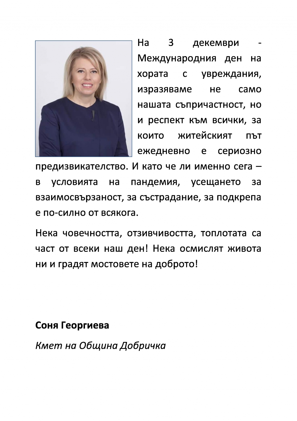 Кметът Соня Георгиева: Нека човечността, отзивчивостта, топлотата са част от всеки наш...