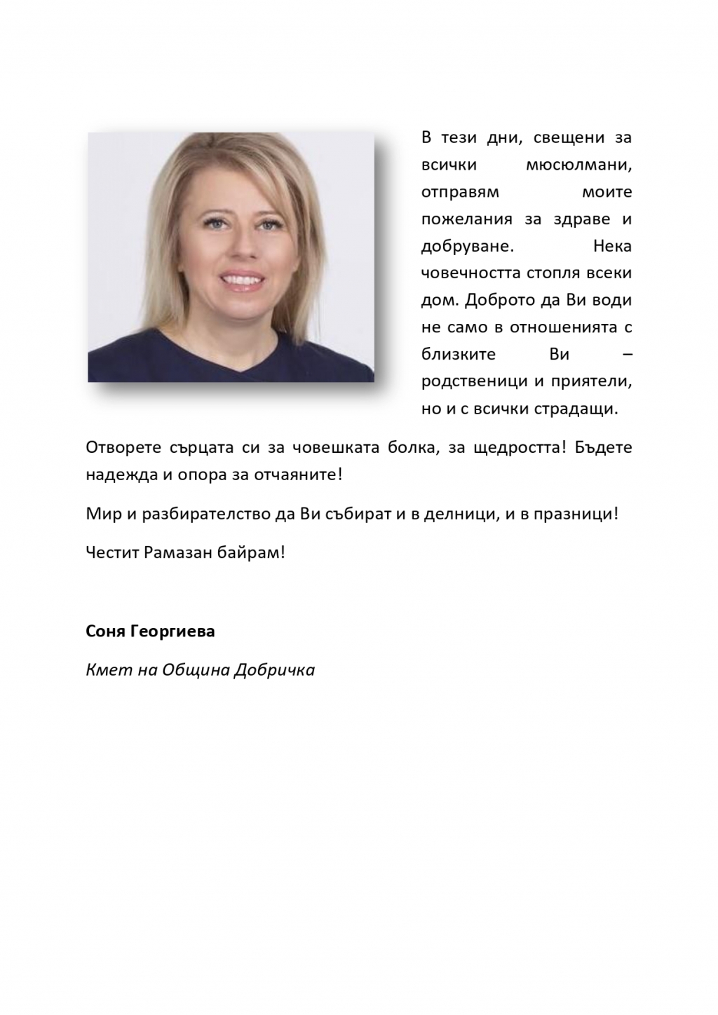 Кметът Соня Георгиева: Да срещнем Гергьовден с възкръсналия устрем да градим бъдещето,...