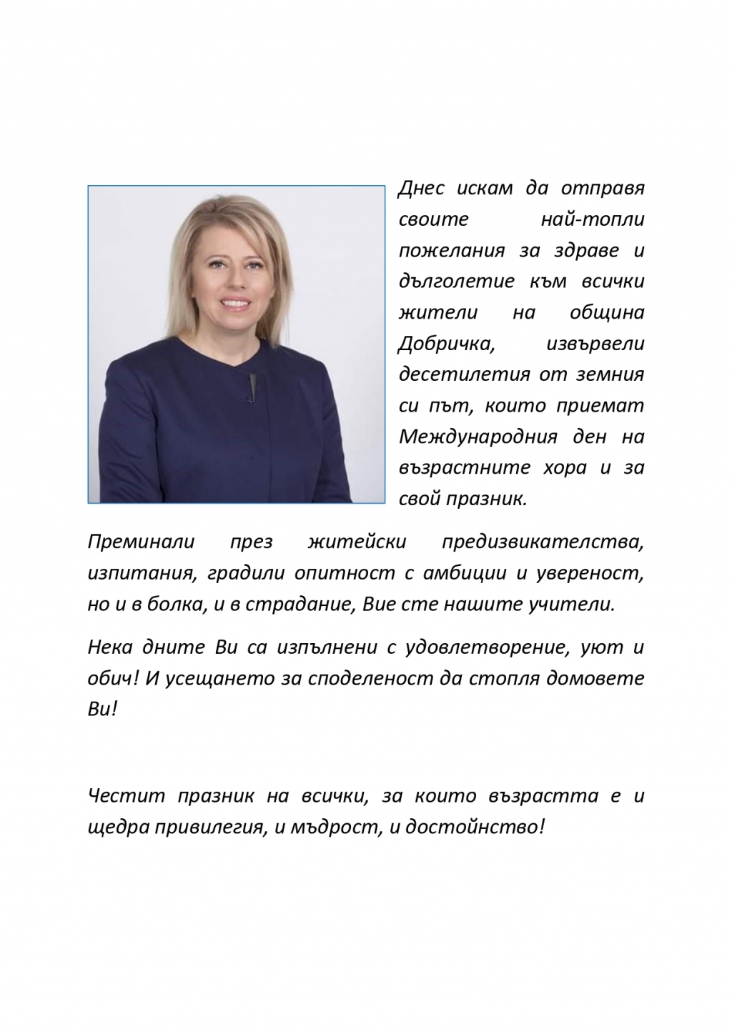 Кметът Соня Георгиева: Честит празник на всички, за които възрастта е и щедра...