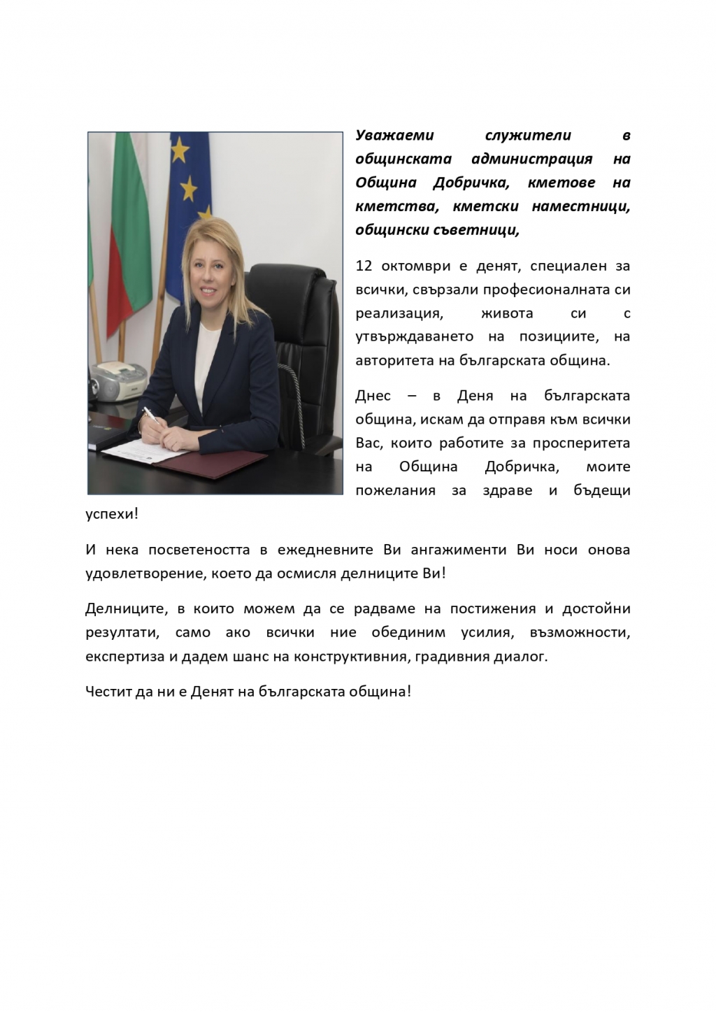 Кметът Соня Георгиева: Честит да ни е Денят на българската община!