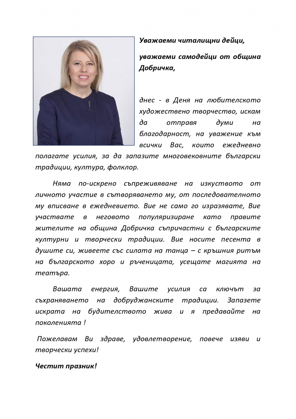 Кметът Соня Георгиева: Запазете искрата на будителството жива и я предавайте на...
