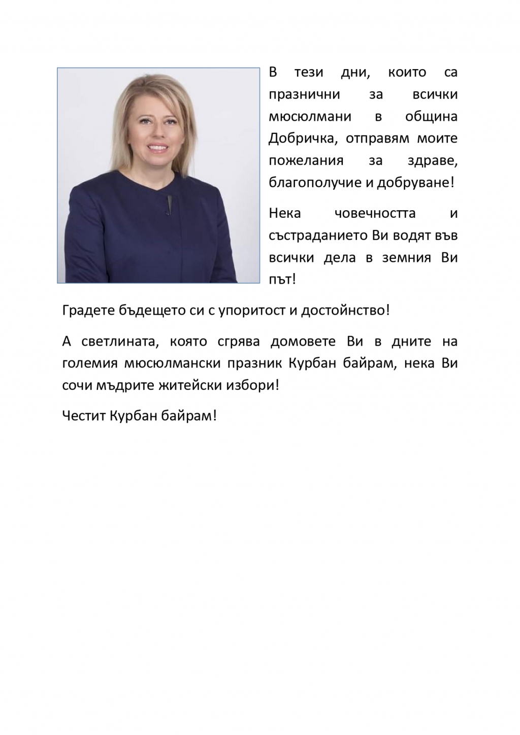 Кметът Соня Георгиева: Нека човечността и състраданието Ви водят във всички дела в...