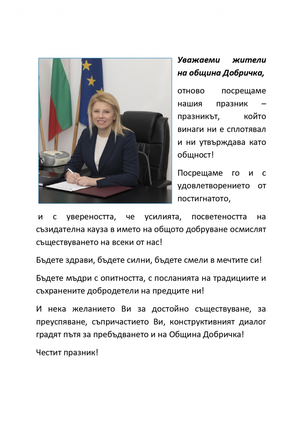 Кметът Соня Георгиева: Нашият празник винаги ни е сплотявал и ни утвърждава като общност