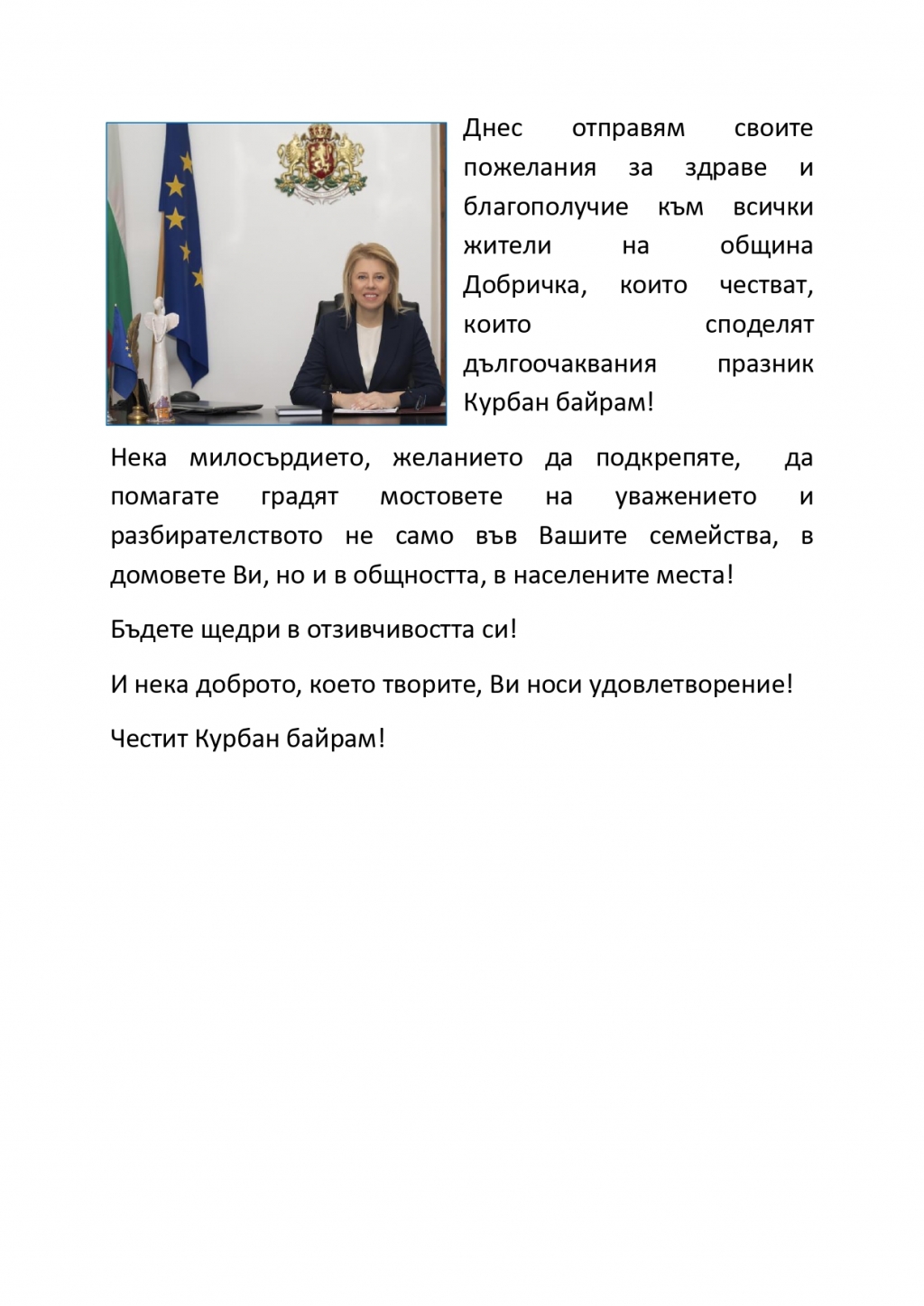 Кметът Соня Георгиева: Нека доброто, което творите, Ви носи удовлетворение!