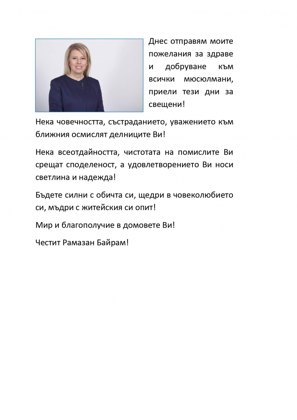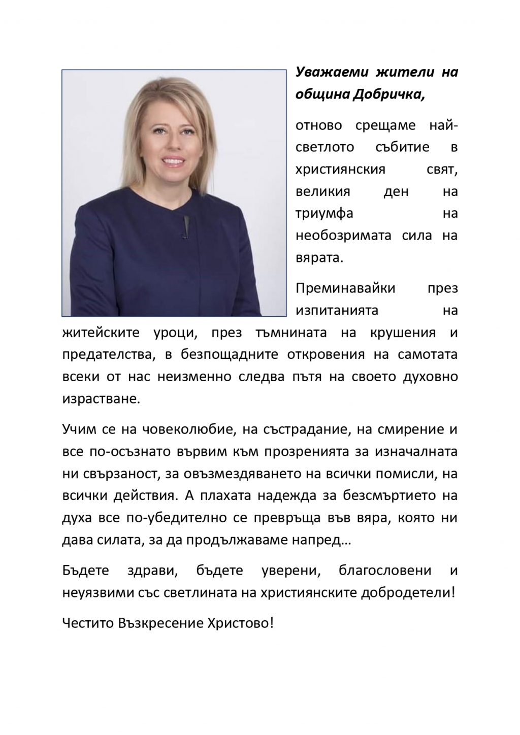 Кметът Соня Георгиева: Бъдете силни с обичта си, щедри в човеколюбието си, мъдри с...